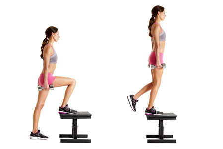 a. Stand facing a bench, step or plyometric box and place the ball of one foot up on the bench