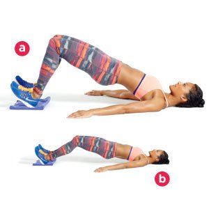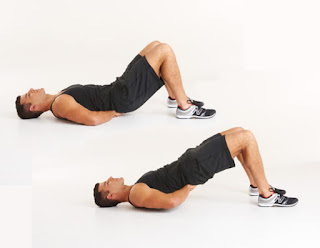 5. Glute and Hamstrings Slides: this is similar to the glute bridge but adds another component. Set yourself as you would for your glute bridge, but place a towel under your heels between your feet and your ground. Activate your abdominals, thrust your hips to the ceiling and slide your feet out very slowly. As you slide, keep pushing your hips to the ceiling.