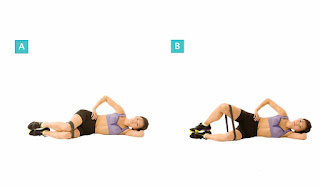 3. Clamshell: another physio favourite. Clamshells end up in a lot of physio programs; they’re simple and effective. For less challenge, first try it without any resistance. As you improve, add a theraband tied just above your knees, or add a side plank to your clamshell for a superset. When performing your clamshell, make sure your hips stay stacked on top of each other (do not roll backwards! – this is the most common way to cheat the clamshell).