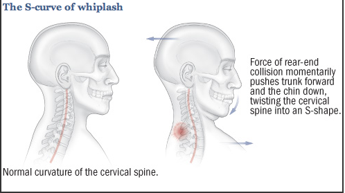 Whiplash of the cervical spine or neck is common among patients who have been involved in rear-end motor vehicle collisions, and also can also affect those who participate in contact sports such as rugby and football, or those who have experienced other physical trauma affecting the neck.