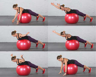 Resting your hips/abdomen on a stability ball, raise your arms in an I pattern (arms above shoulders), a T (arms level with shoulders), Y (similar to I, but arms slightly outspread from head) and W (with elbows bent and hands around shoulder level). Move slowly and use gravity as your resistance.