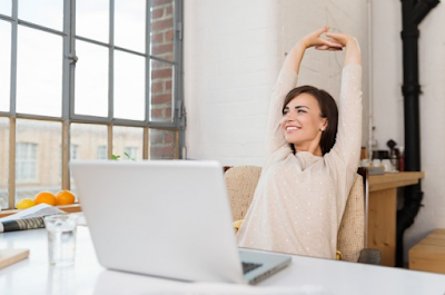 Lower Back: Sitting in your chair, lean forward and grab your ankles with both hands. This move lets you feel your lower back stretching out! Again, hold this for 10 seconds and repeat three more times.