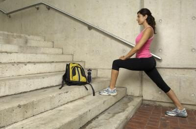 A knee-to-chest pull-in helps stretch the lower back and glutes area from a lying position on the floor. You can do this with both legs or one at a time. Lie face-up with your knees bent and feet flat on the floor. Carefully raise your feet and grasp the back of your thighs, just below your knees. Pull your knees in toward your body as far as possible and hold this for 20 to 30 seconds. Perform the single-knee-to-chest pull-in the same way, except keep one leg straight.