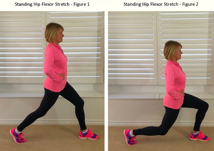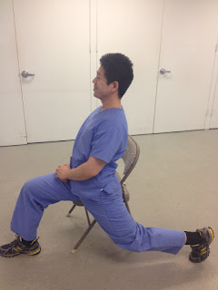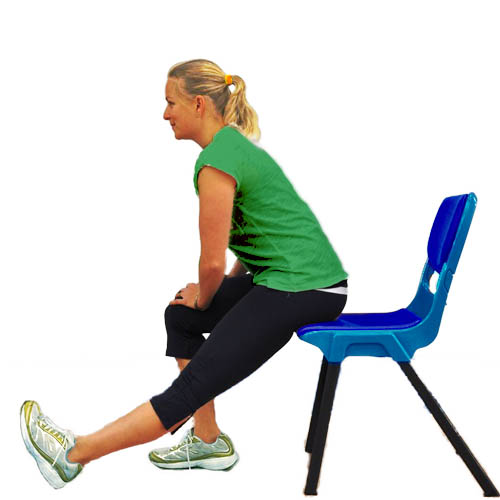 7. Hip flexor stretch: sit on the edge of your chair and keep one foot front and stretch the other leg back. Keep your pelvis tucked under yourself until you find a stretch at the front of the hip of the leg that is stretched back.