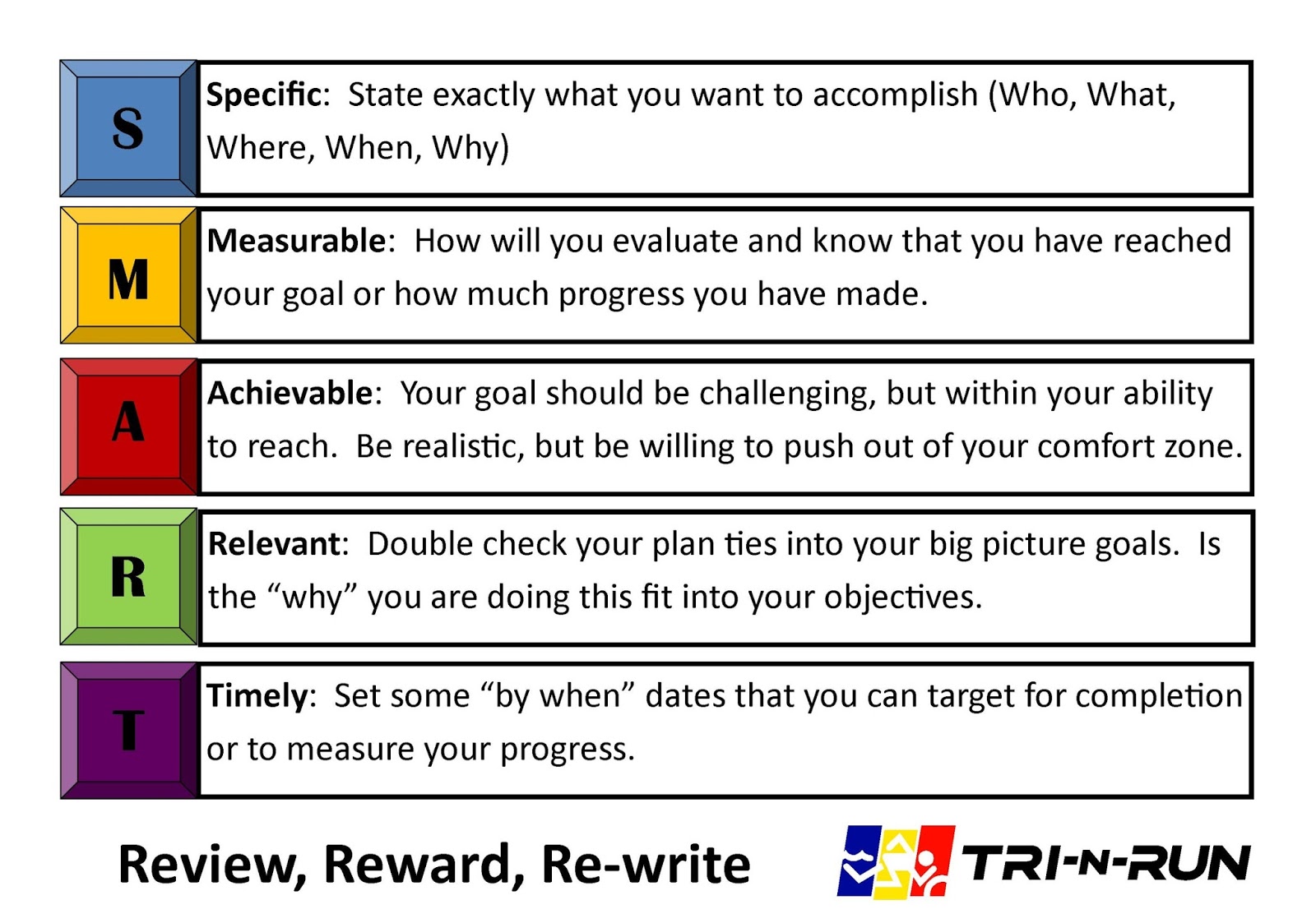5. T is for time-bound: You should add a deadline or time frame to your goal. This can help keep you on track. For example, if you are training for that 5km race, sign up for that race in advance! This will give you a very specific deadline of when and how you’ll want to plan your training runs.